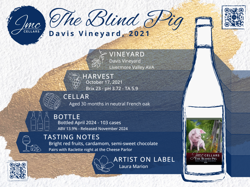 The Davis Vineyard is a small family owned vineyard featuring five different Bordeaux varietals. It is a field blend of 60% Cabernet Sauvignon, 15% Merlot, 15% Malbec, 6% Cabernet Franc and 4% Petit Verdot. Harvested together every year, it is an exciting co-ferment project for our winemaker!