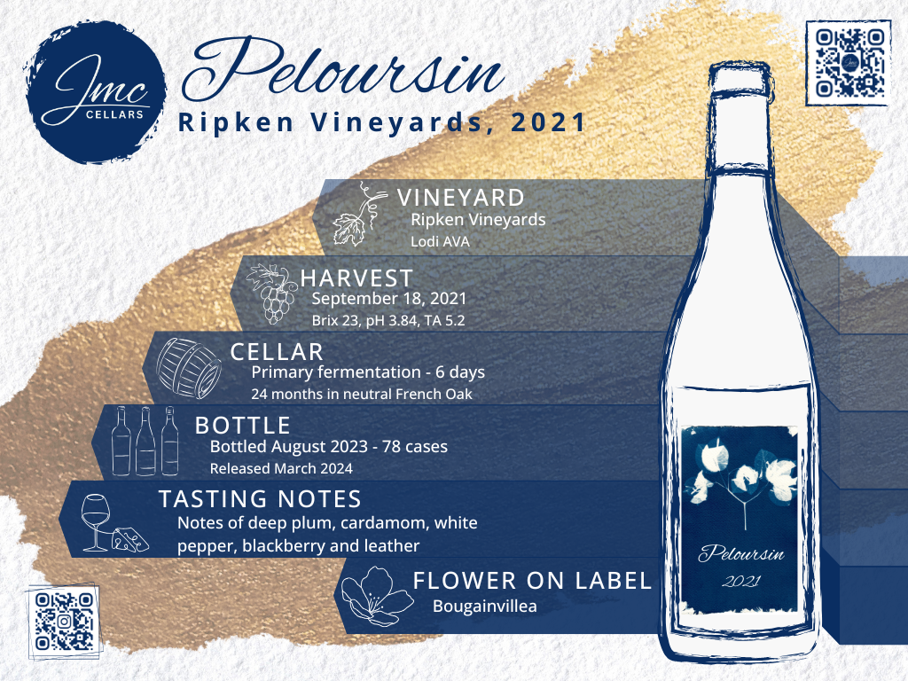 Notes of deep plum, cardamom, white pepper and blackberry. Pairs with a nice steak and mach potatoes.